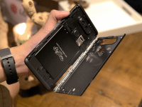 Nënvizojmë se në pjesën mbrapa të telefonit është moduli dual i kamerave i cili tejzgjatet disa milimetra. Megjithatë, një buton anash ju lejon të hapni kapakun e mbrapëm, gjë e cila i lejon përdoruesit të ndërrojnë baterinë, kartën SD dhe atë SIM.